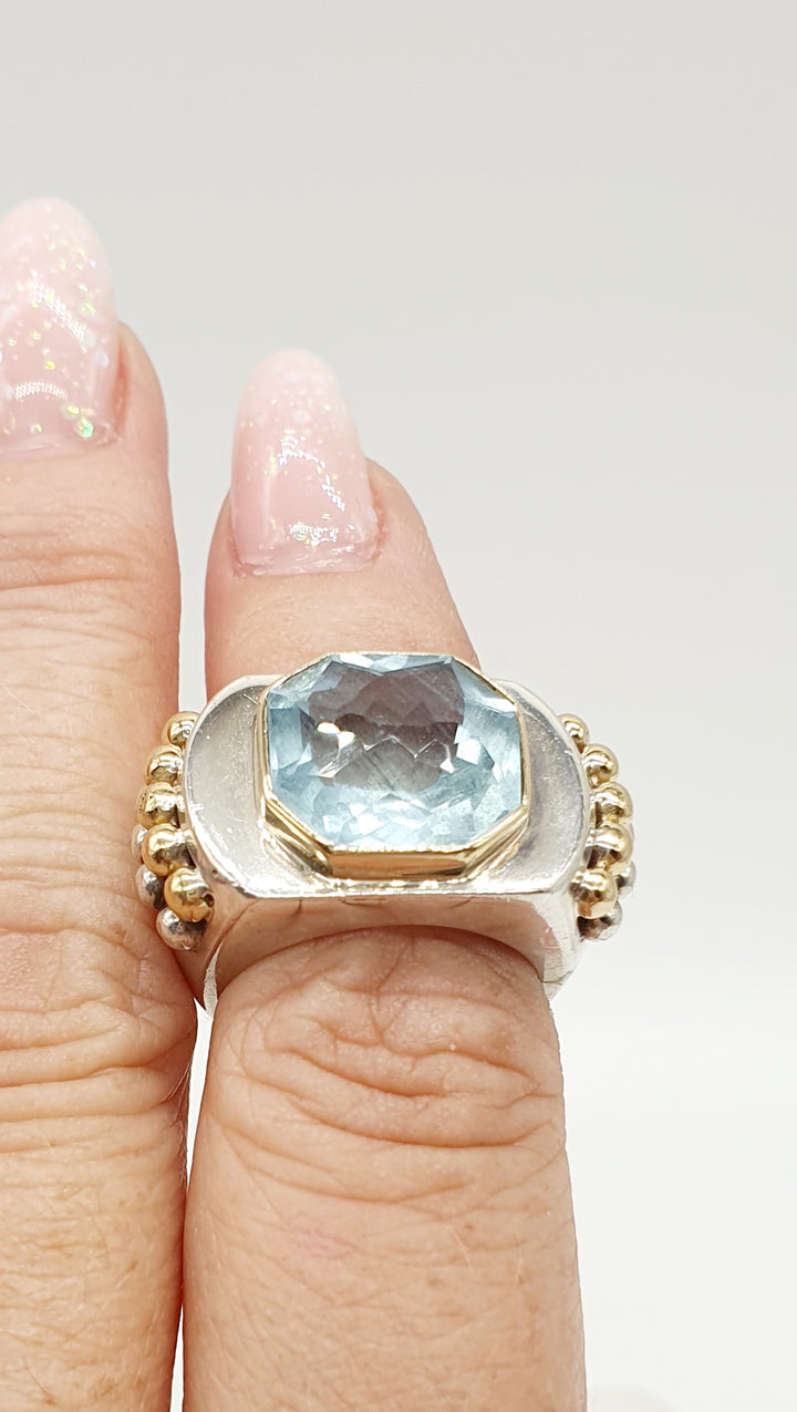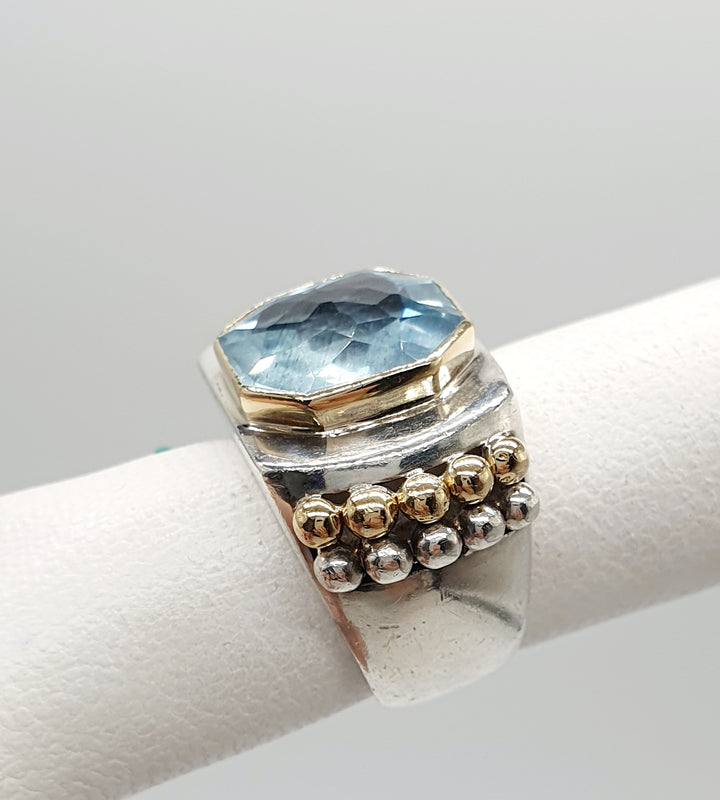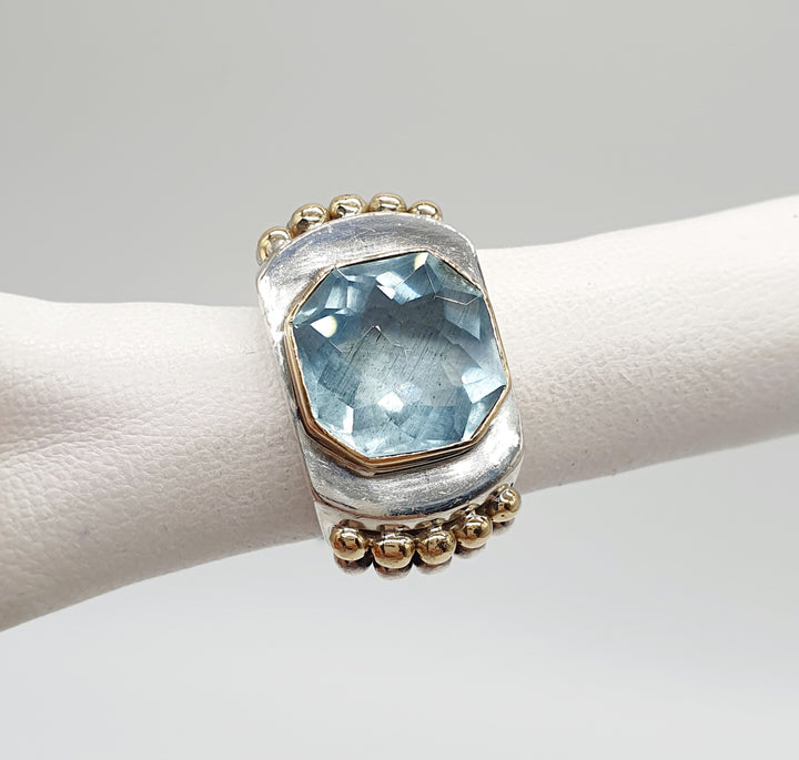 ANELLO A FASCIA IN ARGENTO 925 CON INSERTI IN ORO 18K 750 PIETRA CENTRALE TOPAZIO GR.4,67