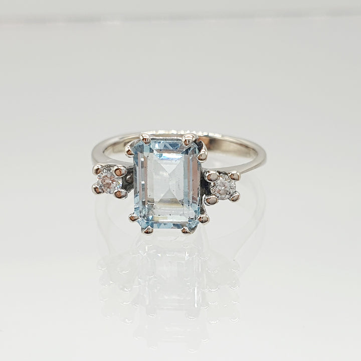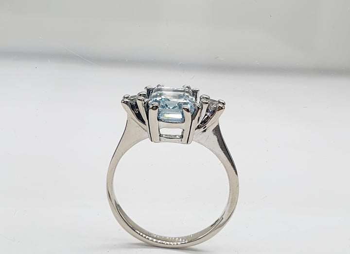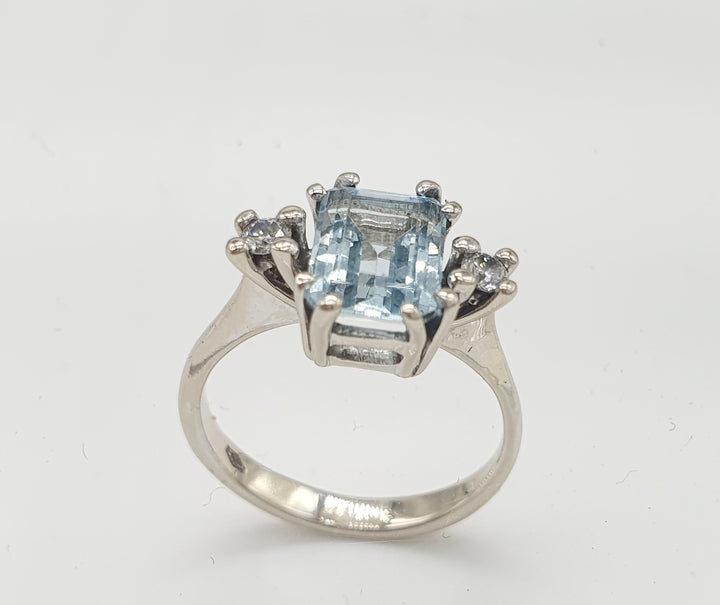 ANELLO ORO BIANCO 18K 750 ACQUA MARINA CENTRALE E 2 PICCOLI DIAMANTI GR.2,94
