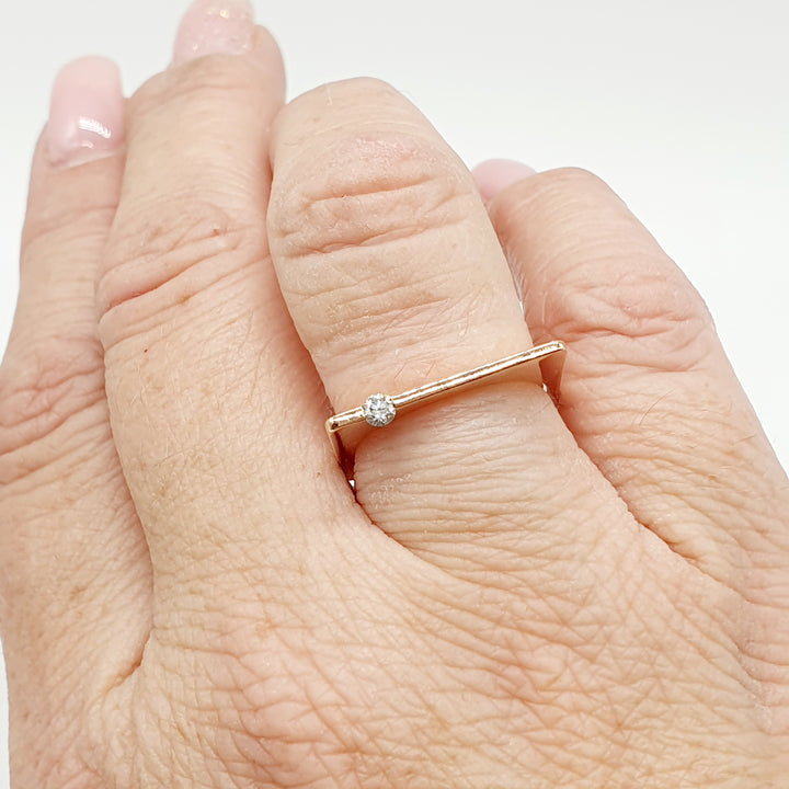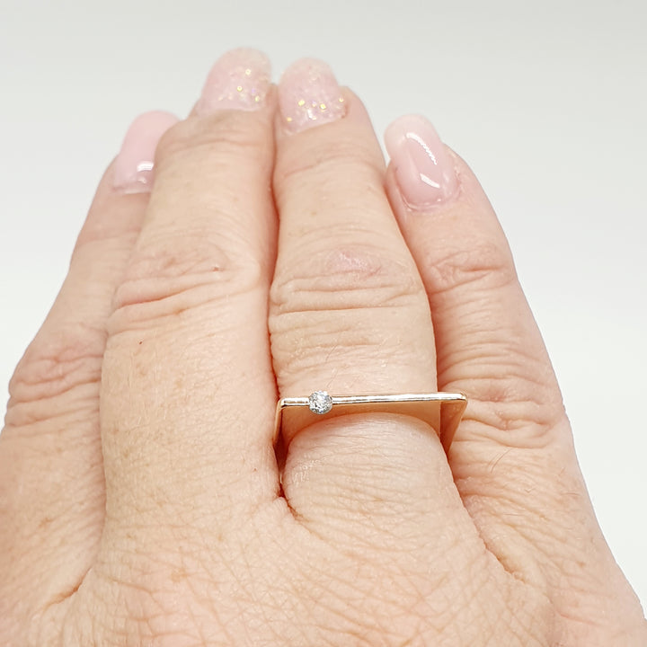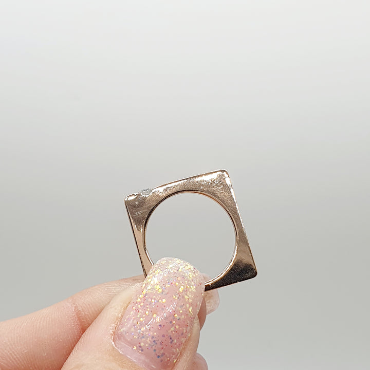 ANELLO QUADRATO IN ORO ROSE' 18K 750 DIAMANTINO DA 0,07 CT GR.4,18