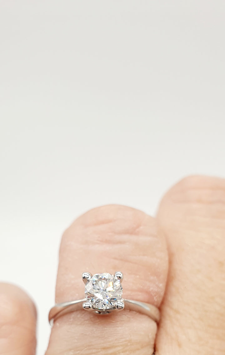 ANELLO SOLITARIO ORO BIANCO 18K 750 BRILLANTE CENTRALE 0,58 CT PUREZZA VS/H GR.3,42