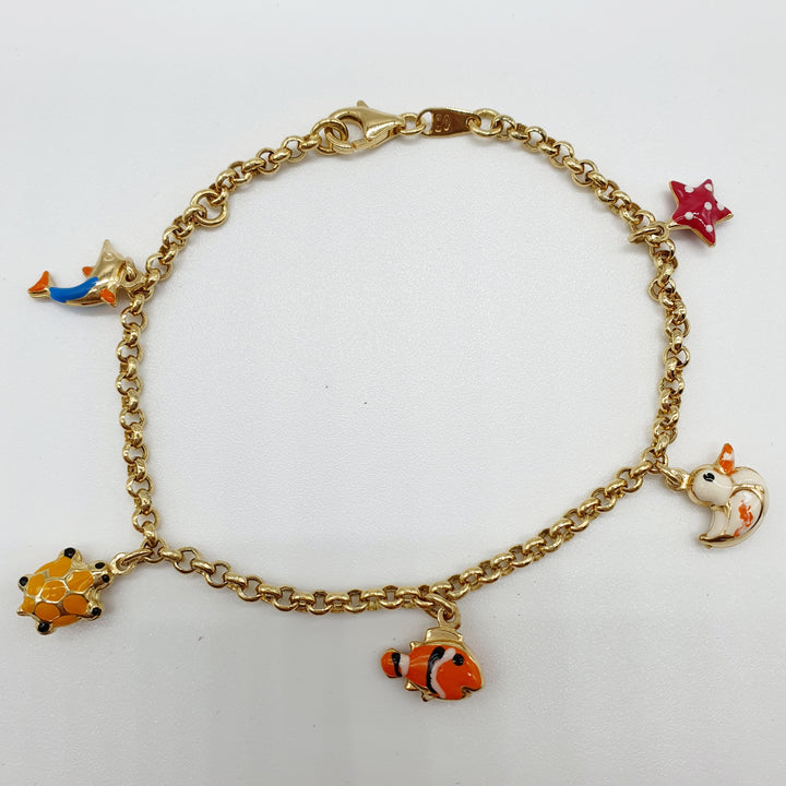 BRACCIALETTO ORO GIALLO 18K 750 CON CIONDOLI SMALTATI CM.18 GR.5,13