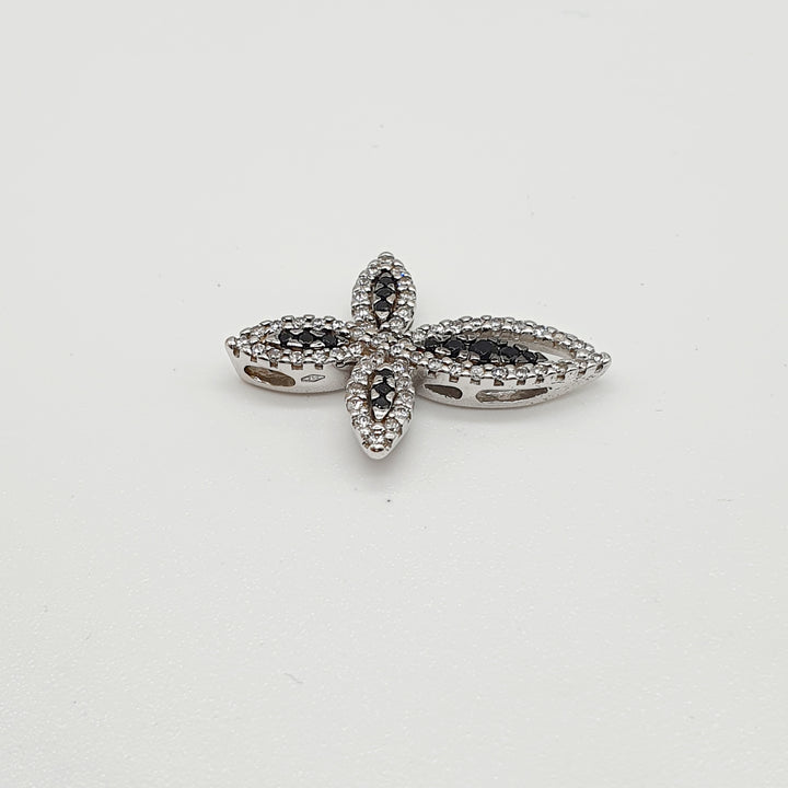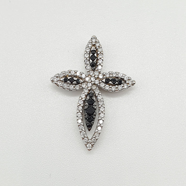 CIONDOLO CROCE IN ORO BIANCO 18K 750 ZIRCONI NERI E BIANCHI GR.3,51