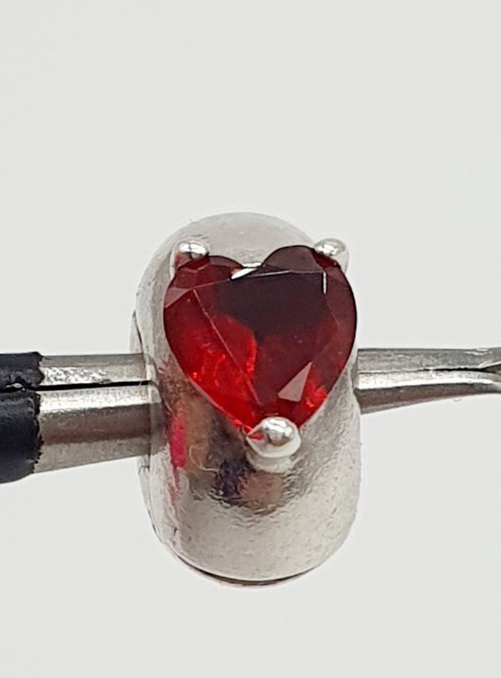 DISTANZIATORE "PANDORA" ARGENTO CON CUORICINO ZIRCONE ROSSO GR.4,67