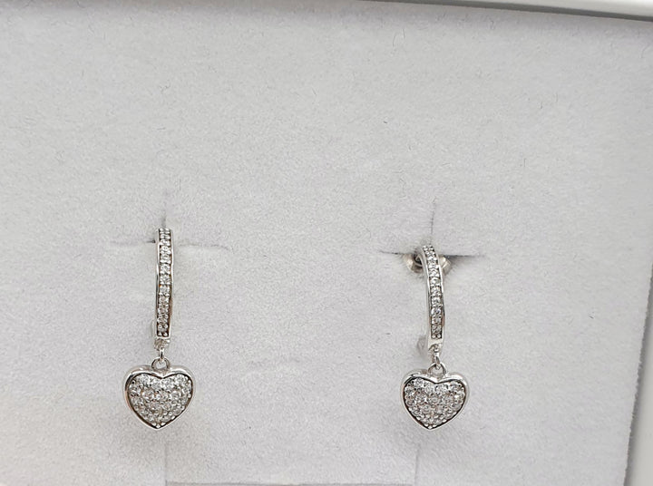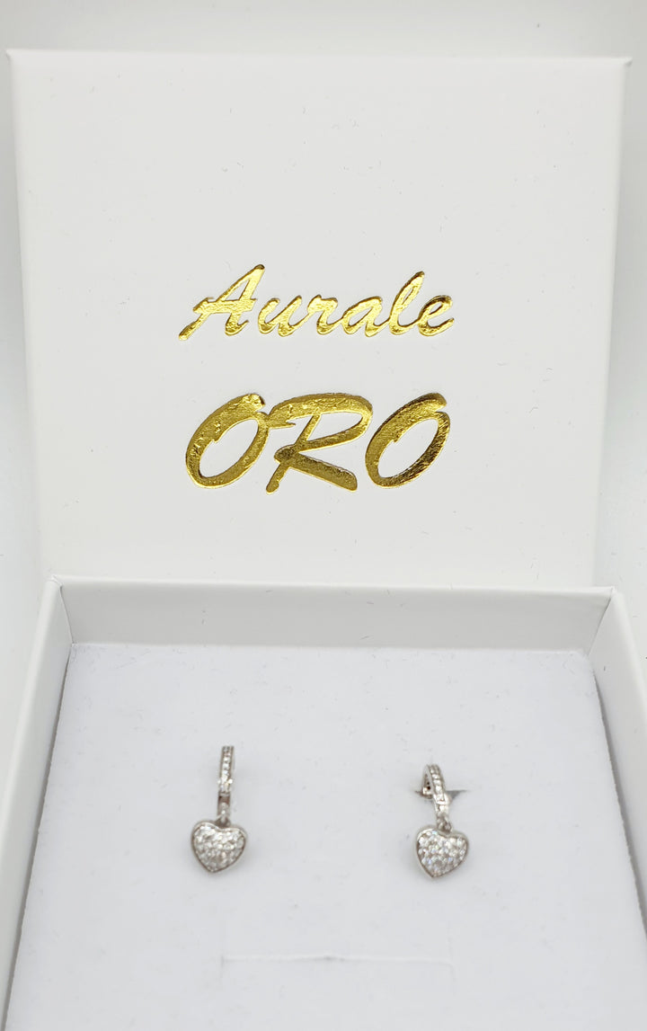 ORECCHINI ARGENTO 925 A SEMICERCHIO, CUORICINO PENDENTE CON ZIRCONI GR.4,67