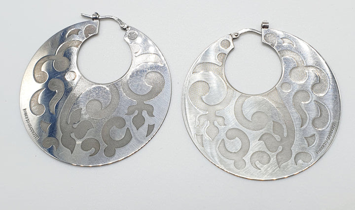 ORECCHINI "RENATO GIANNOTTI" A CERCHIO PIATTI, GRANDI CON RICAMI ARGENTO 925 H.4 CM LARG.4 CM GR.4,67